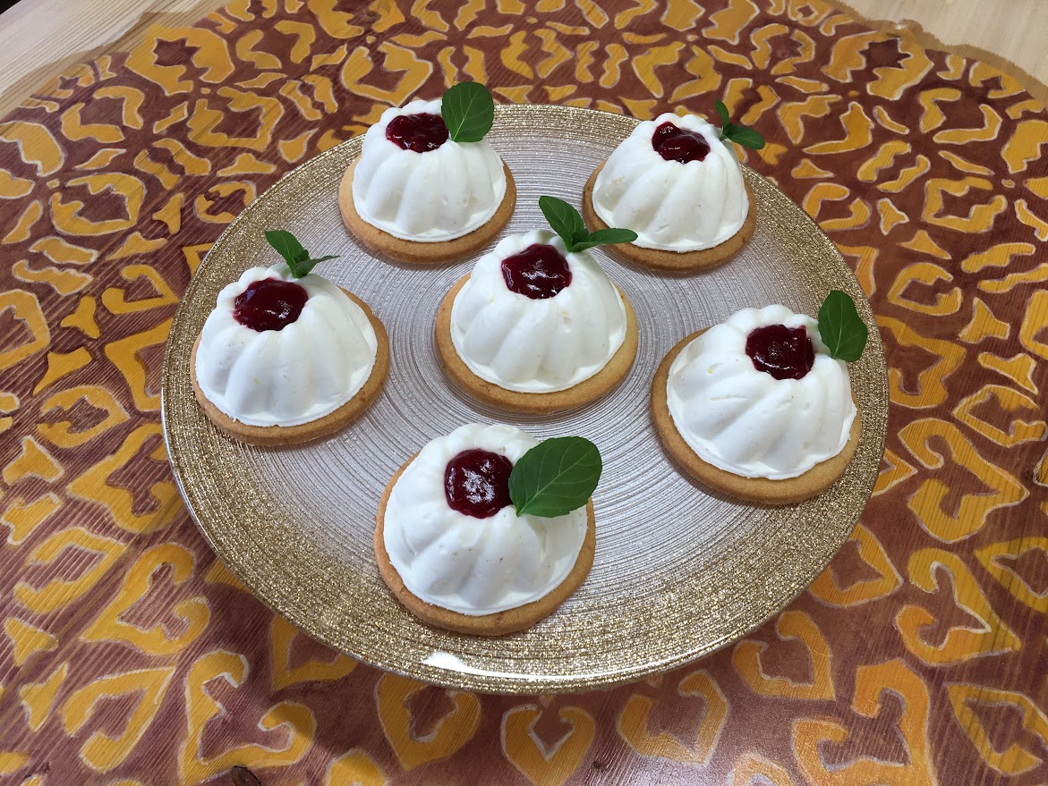 tvarohová mini bábovka na domácí linecké sušence plněná malinami 50,00 Kč