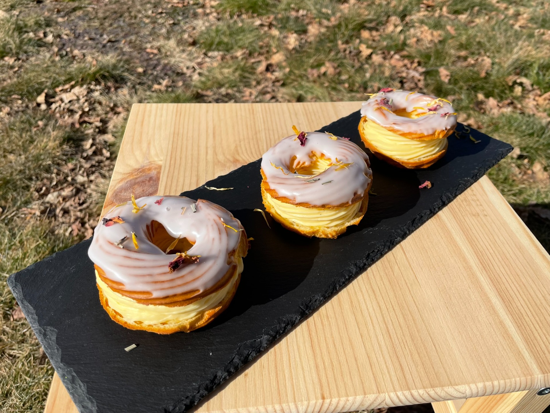francouzský věneček s lískooříškovým žloutkovým krémem a křupavou krustou 72,00 Kč / 35,00 Kč