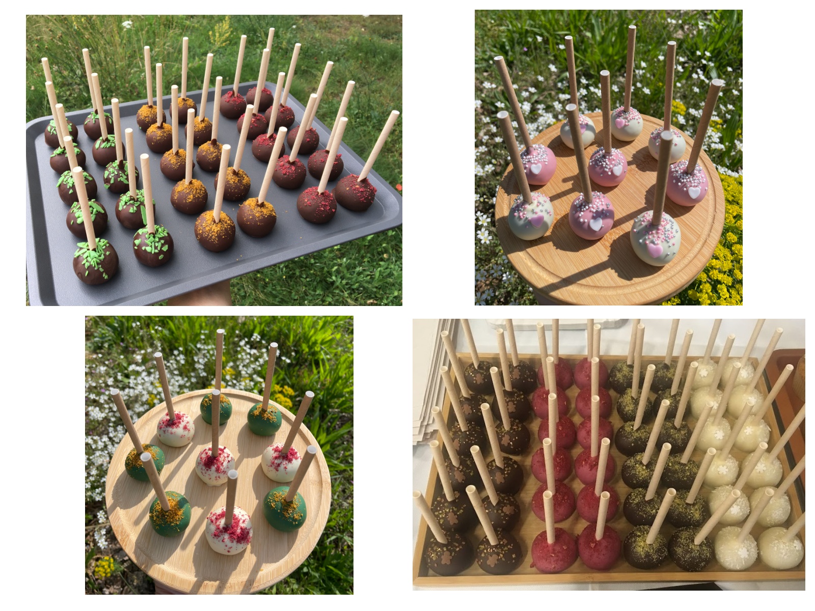 dortová lízátka - dortový korpus, čokoládová ganache, marmeláda, namočené v tmavé/bílé/barevné čokoládě, zdobení od 36,00 Kč
