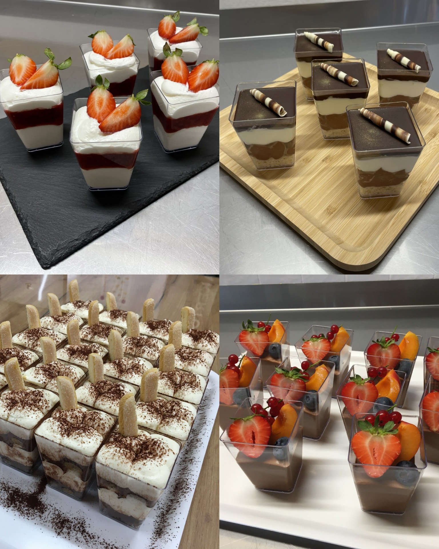 Mini dezerty jsou možné v těcho variantách: Cupcakes, Pavlova, Panna Cotta, Věnečky, Větrníky, Paris-Brest, Kelímkové dezerty - viz fotogalerie níže